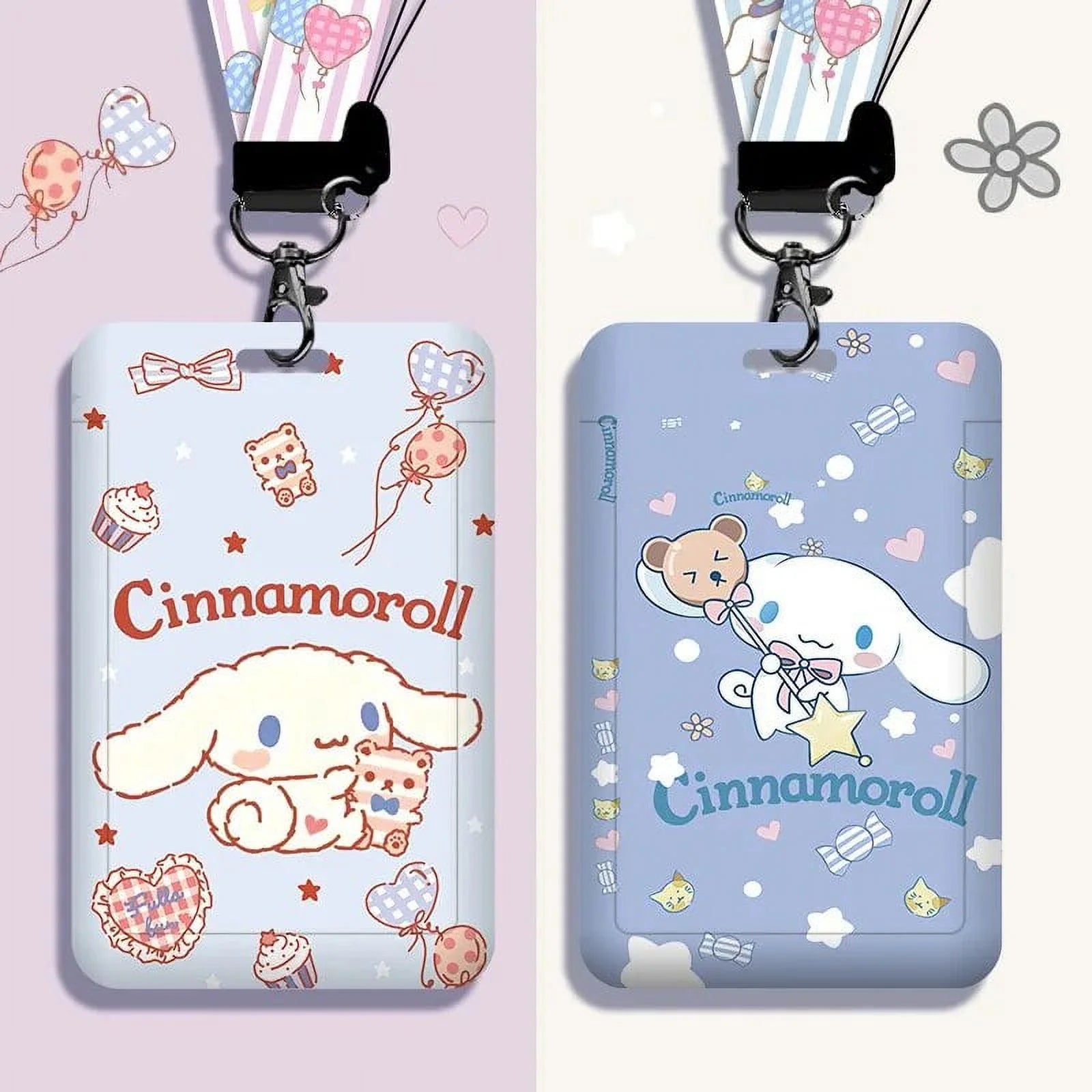 Original Sanrio PVC Anime Card Holder Cinnamoroll Lanyard ID Protective Case Anti-lost Hanging Neck Bag Cartoons Cute Card Cover