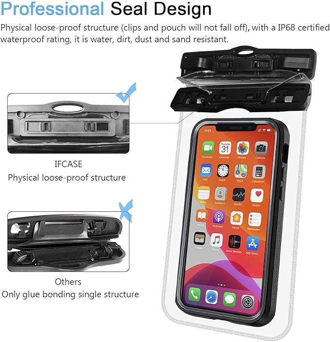 IFCASE Universal Waterproof Case, 2 Pack Large Phone Water Proof Dry Bag Pouch for iPhone 14 Pro Max, 13 12 11 XS XR 7 8 SE, Samsung Galaxy S23 S22 S21 S20 Plus, S23 Ultra 5G (PVC)
