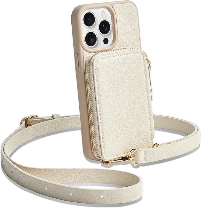 ZVE for iPhone 13 Pro Max Wallet Case Crossbody, Phone Case with Card Holder Wrist Strap, Zipper Leather RFID Blocking Purse Cover Gift for Women for iPhone 13 Pro Max, 6.7", 2021- Beige