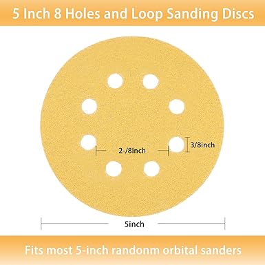 Ajkwp 5-Inch 8-Hole Sanding Disc Hook and Loop, 100 Pcs Orbital Sanding Discs, 60/80/120/220/320 Assorted Grits Gold Sandpaper for Woodworking or Sanding Discs Gold Random Orbital Sander Brand: Akjwp