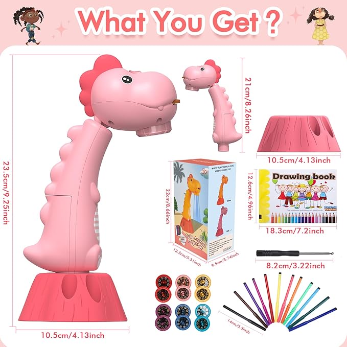 Drawing Projector for Kids,Tracing and Drawing Projector with 96 Slide Cartoon Patterns and 12 Color Brushs,Smart Art Sketcher Projector for 3+ Year Old Girls & Boys(Pink)