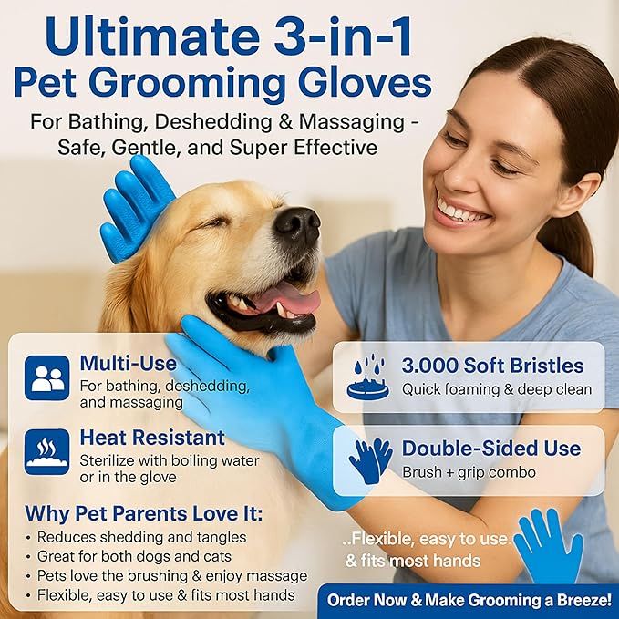 #1 Reusable Silicone Bath & Grooming Gloves – 2-in-1 Deshedding Mitts for Dogs, Cats & Rabbits | Safe Non-Electric Hair Remover | Quick Foam, Massage & Easy Clean