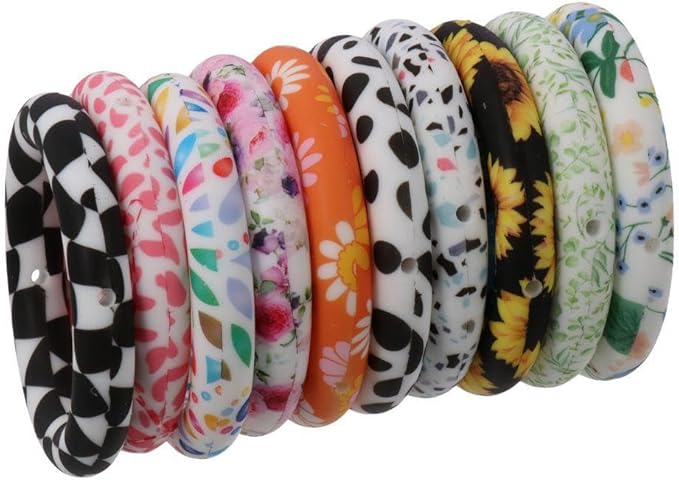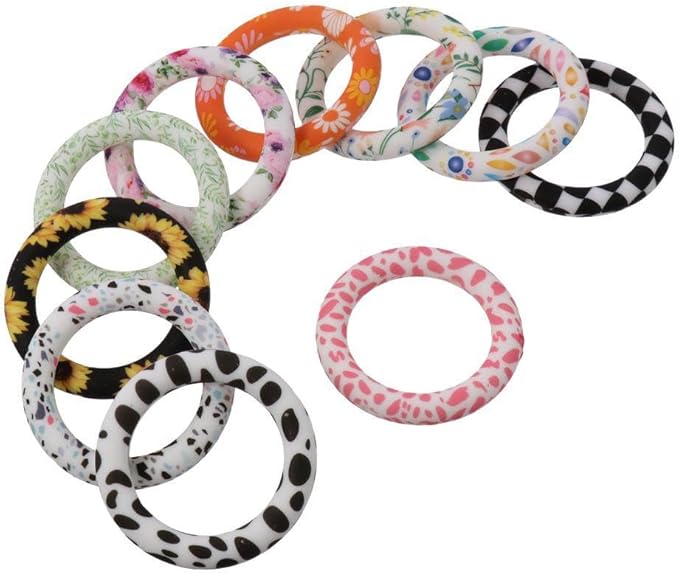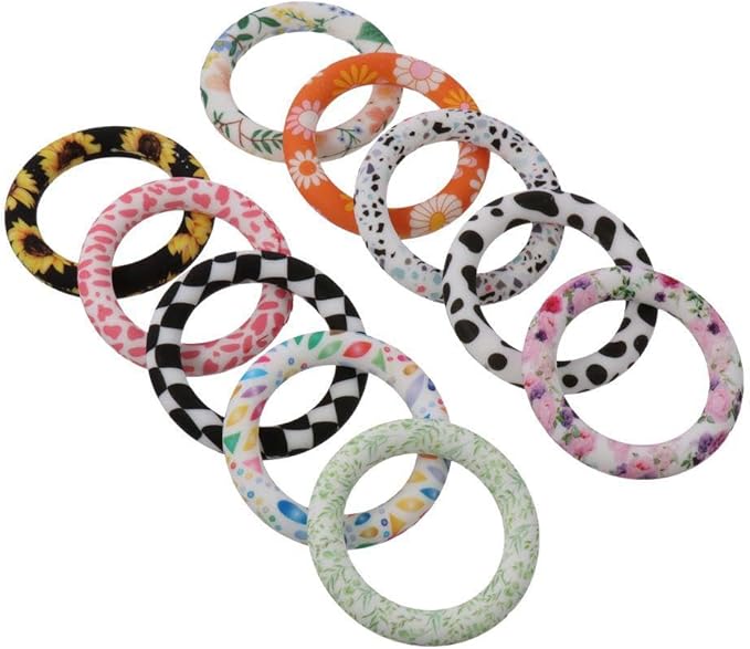 10Pcs 65mm Silicone Bead Ring Round Silicone Bead Loop with 2 Hole Silicone Focal Bead for DIY Keychain Jewelry Making Hanging Ornaments