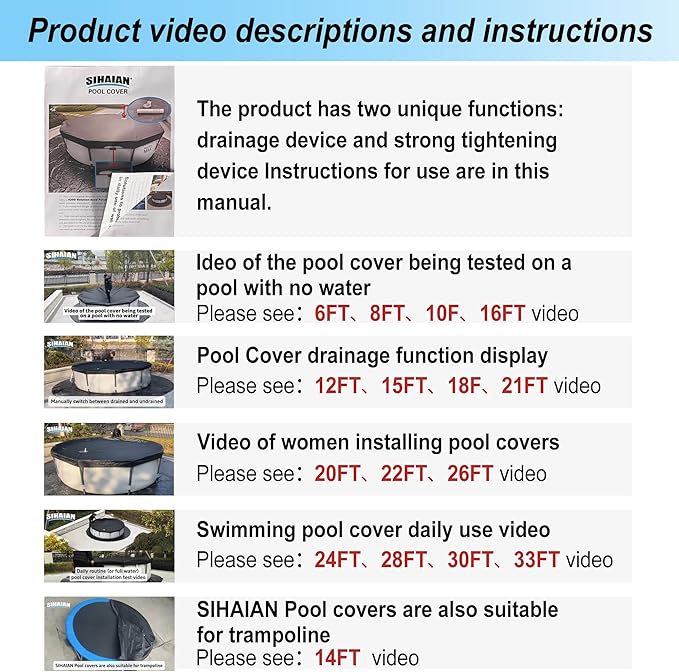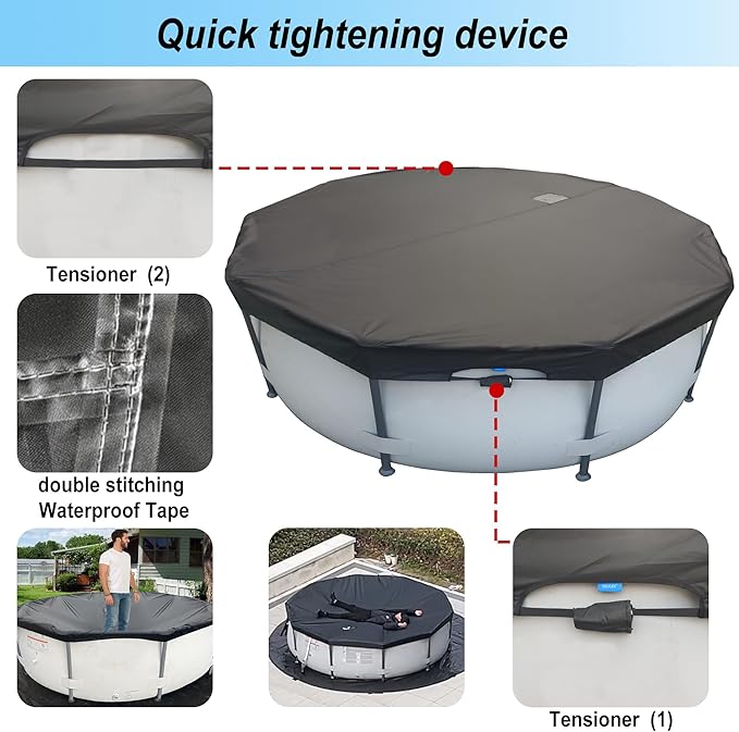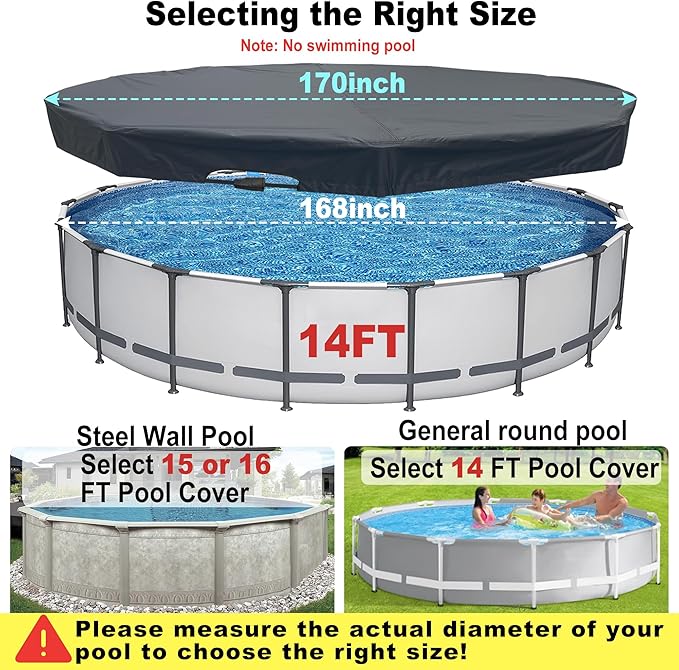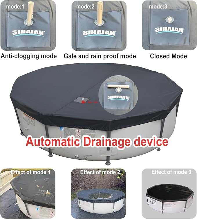 14 Ft Pool Cover with Automatic Drain Above Ground Pool Cover, Easy Installation Round Pool Cover Protector, Round Hot Tub Cover Ideal for hydrophilic and Dustproof Winter Pool Cover