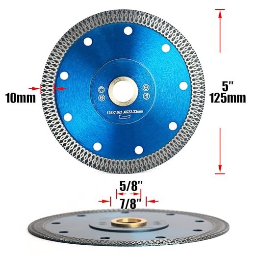 (2 Pack) 5" Super Thin Diamond Saw Blade Porcelain Tile Blade Dry or Wet Cutting for Granite Marble Porcelain Tile A