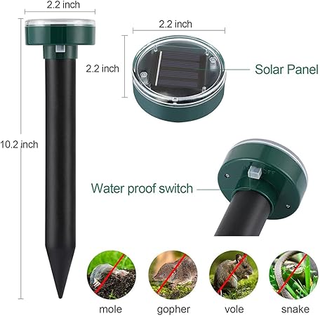 Wide coverage: The upgraded mouse repeller has a protection range of up to 1600 feet. It can penetrate the soil and prevent them from entering the protected area, because moles are very sensitive to sound and vibration. This is an effective way to prevent them from damaging your outdoor areas, such as lawns, yards, and gardens.