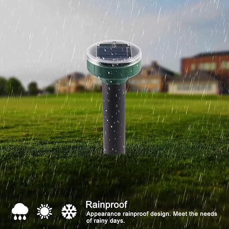WATERPROOF: The gopher repellent solar panel is protected in a waterproof ABS plastic housing. So the mole repellent can work even in rainy days.Keep the Solar Panel Clean - Wiping it regularly with a damp cloth.A dirty panel will reduce the amount of sunlight available to charge the units batteries.