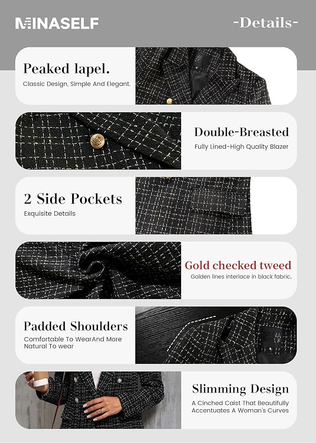 2025Fall Winter Women's Tweed Blazer Jacket-Plaid Fully Lined Fashion Business Casual Lapel Elegant Coat Pockets Amazon's Choice