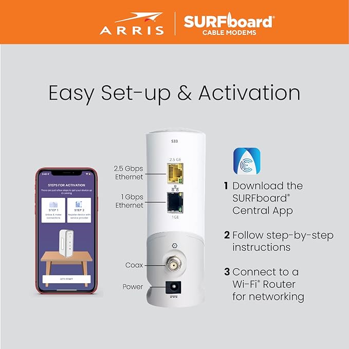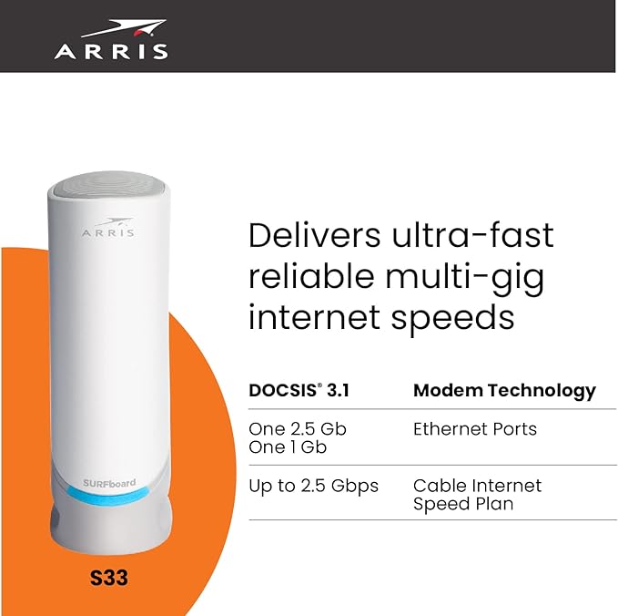 ARRIS - SURFboard S33 32 x 8 DOCSIS 3.1 Multi-Gig Cable Modem with 2.5 Gbps
