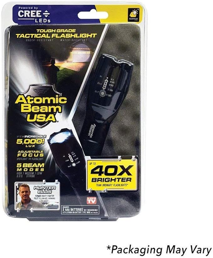 ‚û§ Atomic Beam flashlight requires 3 AAA batteries or 1 rechargeable 3.7V lithium ion battery. Batteries not included..