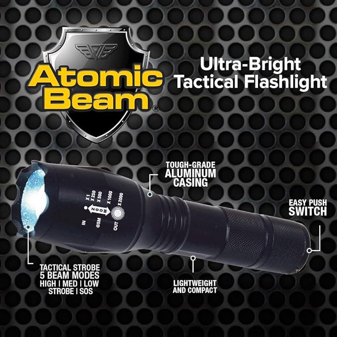 Atomic Beam LED Flashlight Original by BulbHead, 5 Beam Modes, Tactical Light Bright Flashlight (1 Pack)