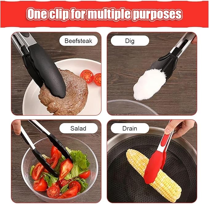 BBQ 7/9/12 Inch Small Clips Bread Barbecue Tongs Steak Clip Food Clips BBQ Cooking Baking Salad Kitchen Accessories Accessories(7inch black)