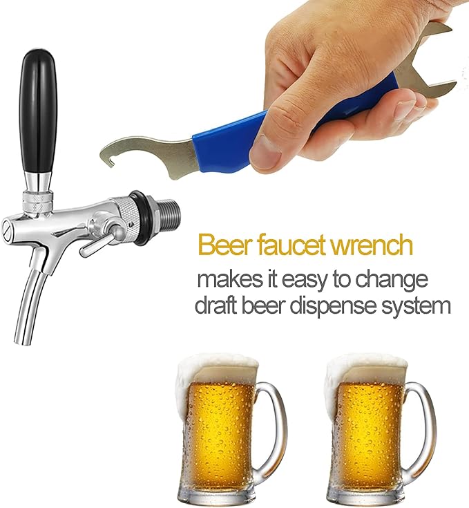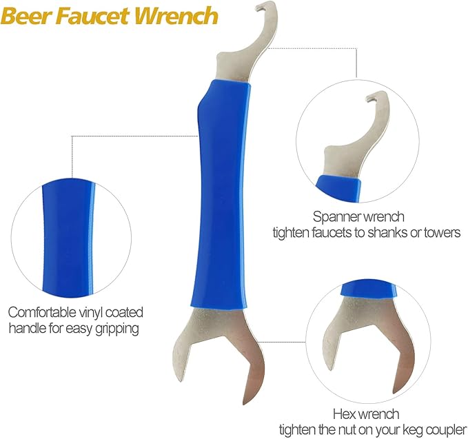 This heavy-duty Beer Faucet Wrench is designed for precise and secure tightening or loosening of draft beer tap faucets. Featuring a hex nut keg spanner, it fits draft couplers and kegerators, ensuring efficient maintenance and installation. Crafted for durability and ease of use, this tool is essential for professionals and enthusiasts aiming to keep their draft systems functioning smoothly and leak-free.