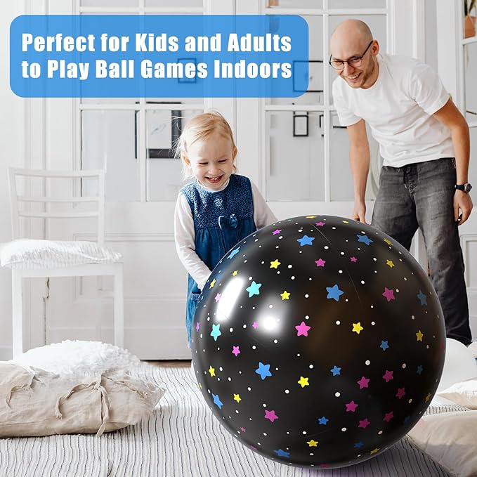 New Design and Large Size: You will receive one big beach ball with a diameter of approximately 24 inches/60 centimeters when inflated and a length of approximately 35 inches when deflated. The black beach ball with the midsummer starry sky pattern allows the whole family to enjoy fun in the summer