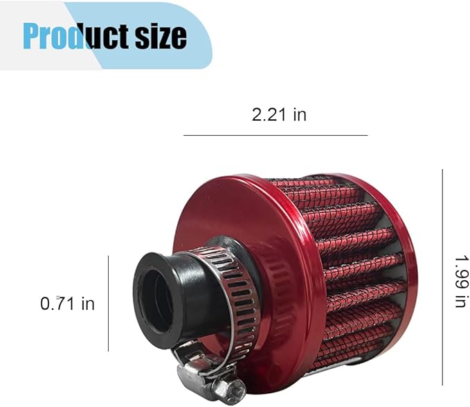 Widely Applicable: The air intake filter mounting hole is 2.211.99 inches in size and is washable and reusable. Suitable for most 12mm intake cars and motorcycles. Please check that the size matches before buying.
