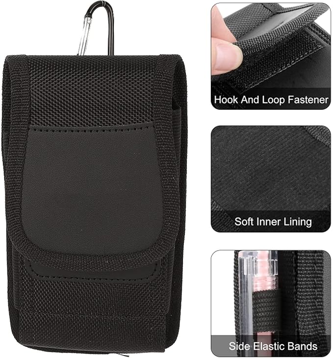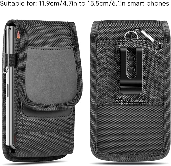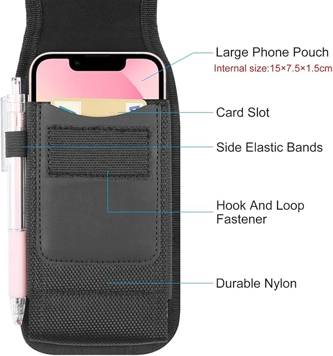 This versatile nylon cell phone purse combines functionality with convenience, featuring a secure belt clip design and integrated card slot for essential storage. Precisely engineered to accommodate smartphones ranging from 4.7 inches (11.9cm) to 6.1 inches (15.5cm), it provides protective housing while maintaining accessibility. The durable construction ensures reliable performance for everyday carry scenarios without adding unnecessary bulk.