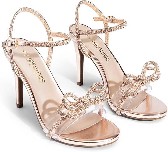 Elevate your style with DREAM PAIRS Women's Heels. The round toe design coupled with rhinestone accents and double bowknots add a touch of elegance to any outfit. With sparkly stilettos and a sturdy heel, these sandals are perfect for parties and evening events.