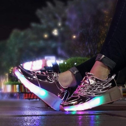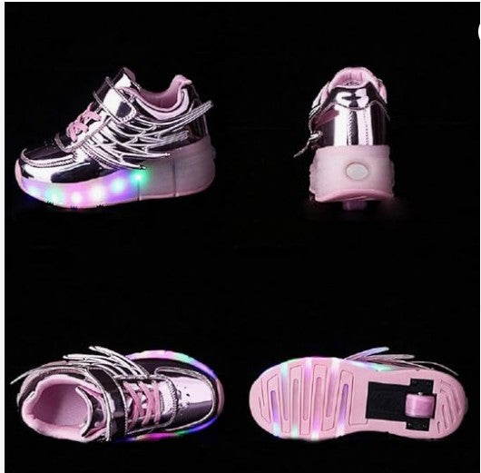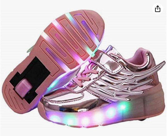 Ehauuo Kids Single Wheels Shoes with Lights Rechargeable Roller Skates Shoes Retractable LED Flashing Sneakers Wheels Shoes for Unisex Girls Boys Beginners Gift