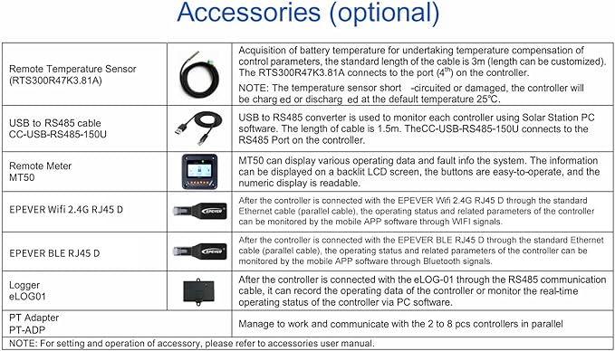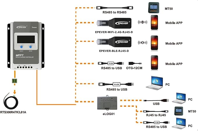Epever Temperature Sensor Cable Fit for MPPT Solar Charge Controller with 3.81/2P Connector (RTS300R47K3.81A)