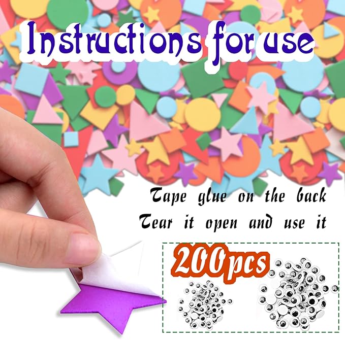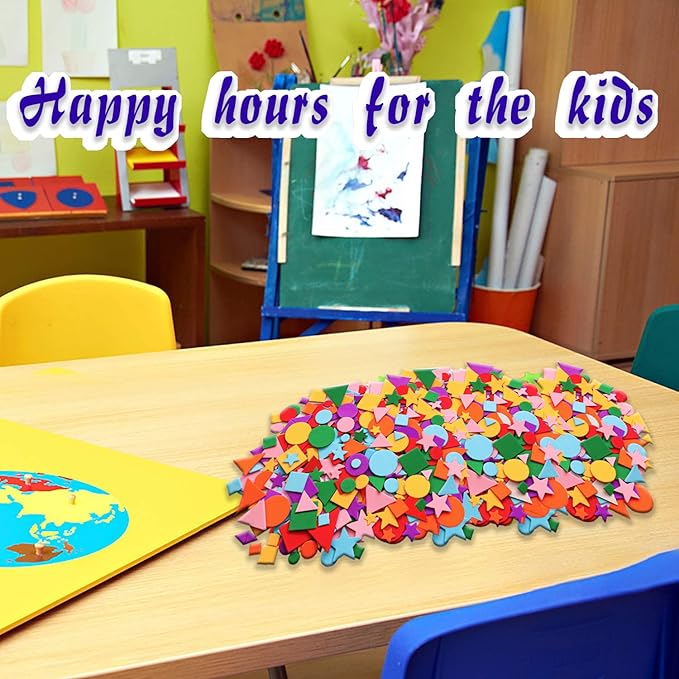 The Gushu 1500-piece Foam Stickers set offers a vibrant collection of self-adhesive geometric shapes in 10 colors, including circles, squares, triangles, and stars. Designed for preschool craft programs, these foam stickers feature added googly eyes to inspire creativity and sensory engagement. Their easy-to-use adhesive backing makes them perfect for hands-on learning, art projects, and DIY activities, supporting fine motor skills and imaginative play in young children.