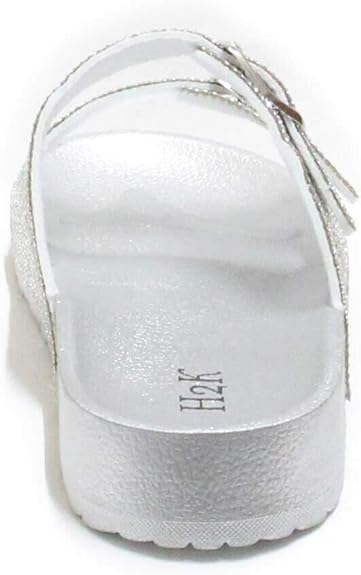 Experience ultimate comfort with H2K Women's Glitter Double Buckle Adjustable Slip-On Sandals. The Espen design features a stylish glitter finish and two adjustable buckles for the perfect fit. Slide on these sandals and enjoy all-day comfort in style.