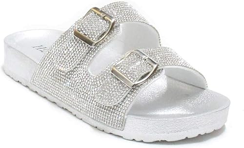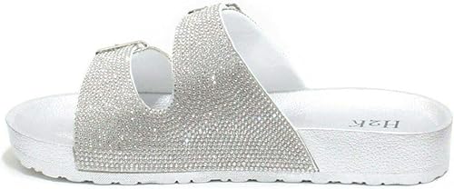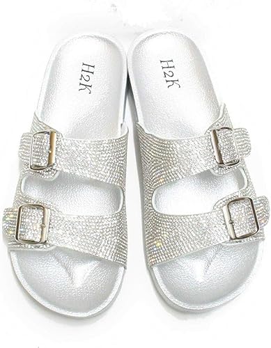 H2K Womens Glitter Double Buckle Adjustable Comfort Slip On Slide Sandals Espen