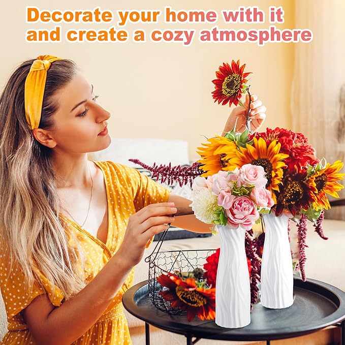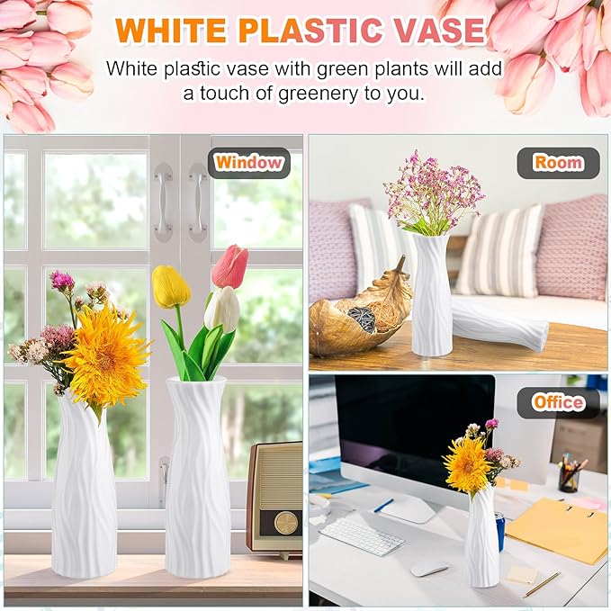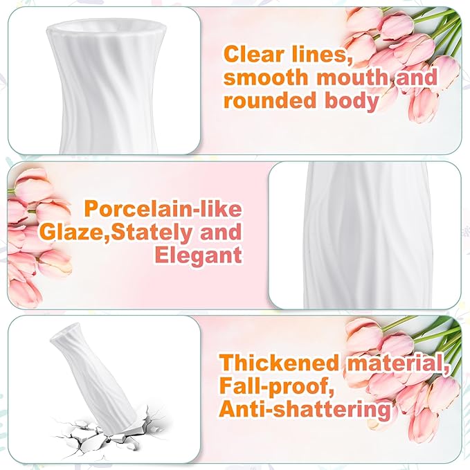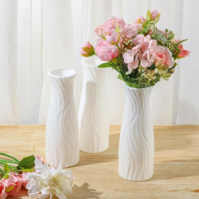 Hoolerry 12 Pcs White Flower Vases Bulk for Centerpieces Plastic White Bud Vase for Flowers Ceramic Look Flower Vase Decorative Tall Unbreakable Vase for Flowers Home Office Table(Elegant Style)