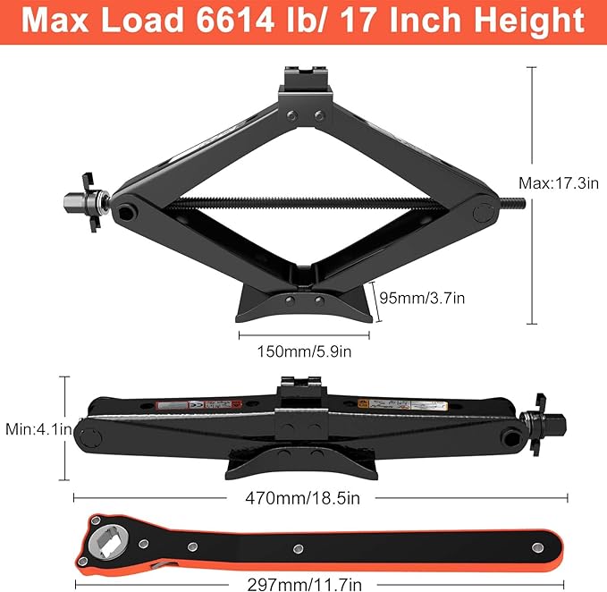IMAYCC Scissor Jack, Portable Car Jack Kit 6614 lbs (3 Ton), Universal Tire Change Kit for Auto/SUV/MPV - Tire Jack Max 17 Inch