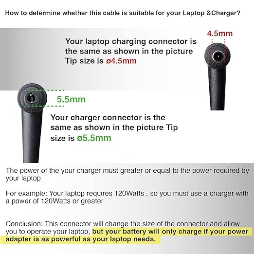 Laptop Adapter Tip Connector Converter 5.5 x 2.5mm Female to 4.5 x 3.0mm Male for MSI Katana ASUS ROG Zephyru Zenbook Vivobook TUF 19V 6,15A 6,32A 9,23A 20V 6A 7,5A 9A