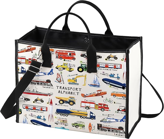 LEVLO Transport ABC Canvas Tote Bag Vehicle Alphabet Gift Transport Alphabet Shoulder Bag Car A-Z Merchandise