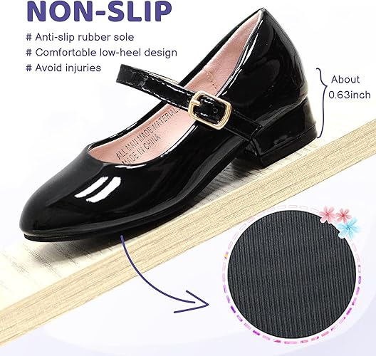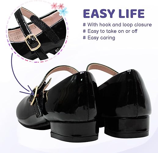 LseLom Girls Dress Shoes-Mary Jane Shoes for Girls Low Heel Princess Hook and Loop Dress Shoes Party Wedding Flats for Little/Big Kids
