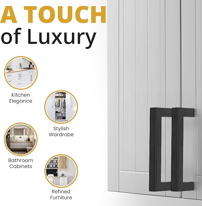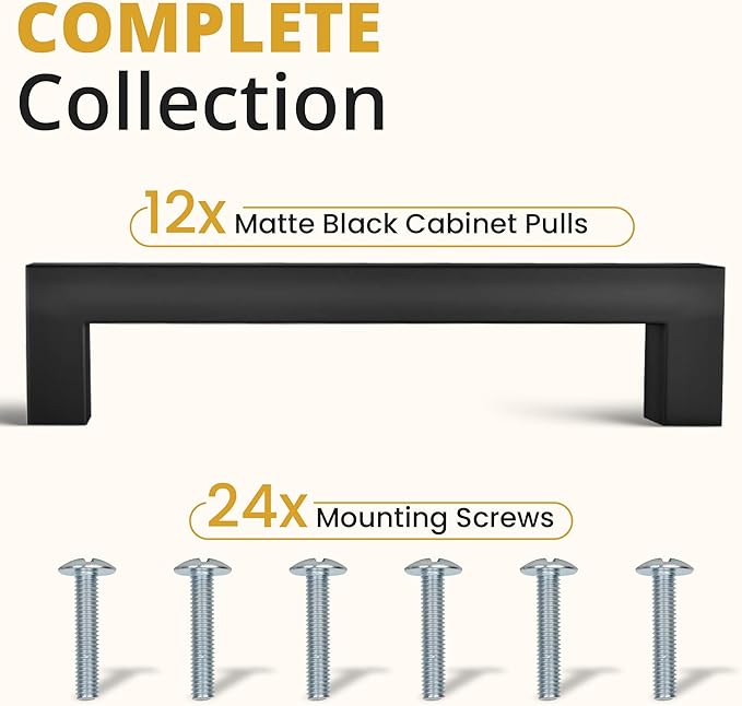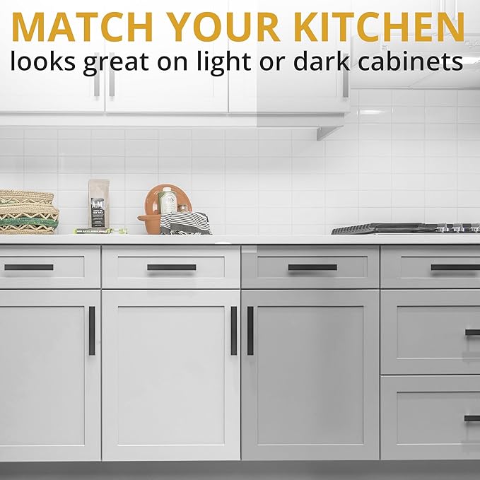 Mega Handles 12 Pack I Cabinet Pulls 5.5 Inch, Stainless Steel Cabinet Handle Pulls I Ideal for Kitchen Drawer, Cabinets, Door, Cupboard I Hardware for Cabinets - Hole Distance 5 Inch - Matte Black