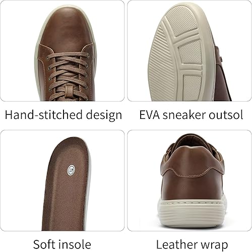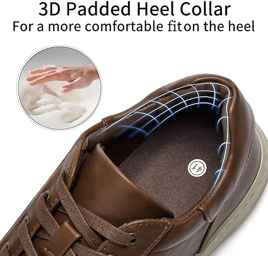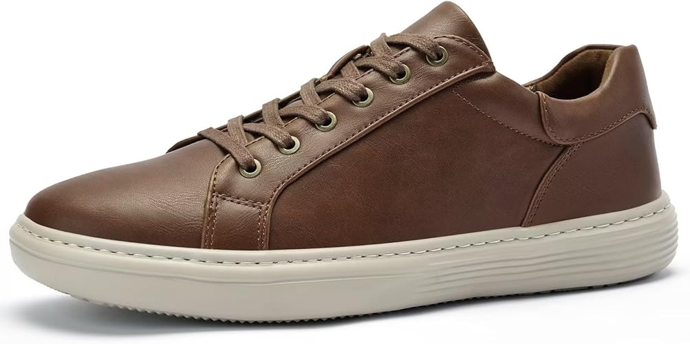 Mens Shoes Casual Sneakers - Business Brown Leather Comfort Memory Foam Fashion Dress Sneakers for Men Office Walking Size 8.5