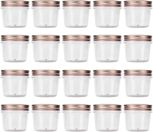 Organize and store with ease using novelinks 4 oz Clear Plastic Jars with Rose Gold Lids. These refillable round containers are perfect for kitchen and household storage. Made from BPA-free materials, they offer a safe and durable way to store your items. With a pack of 20, you'll have plenty of storage options.