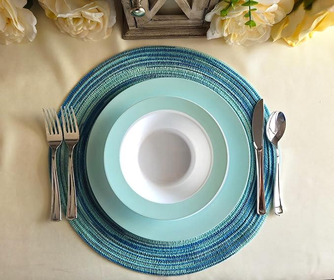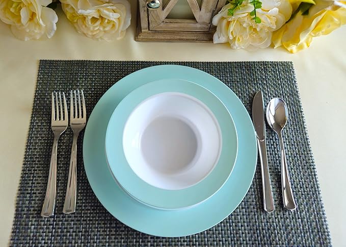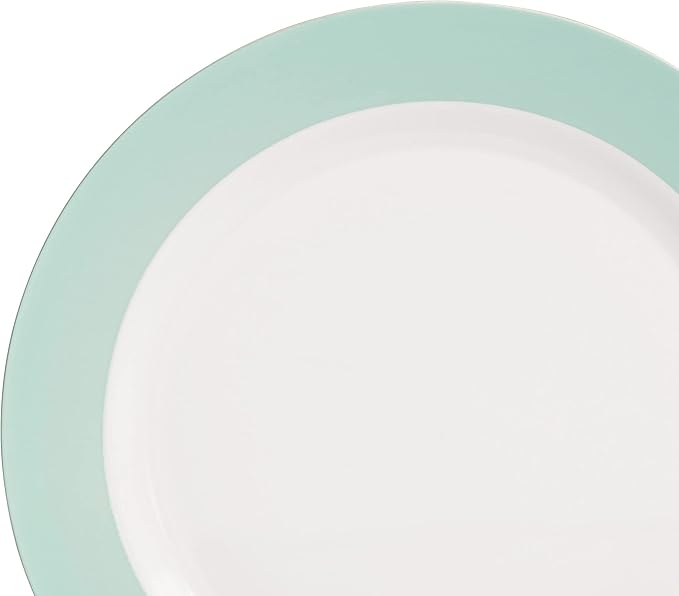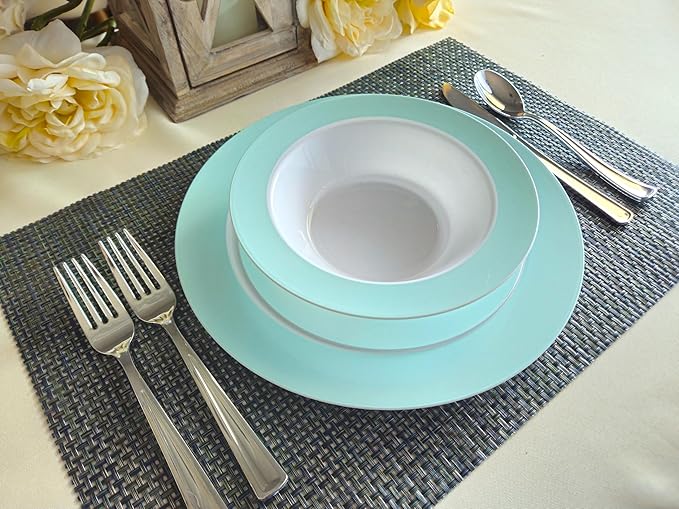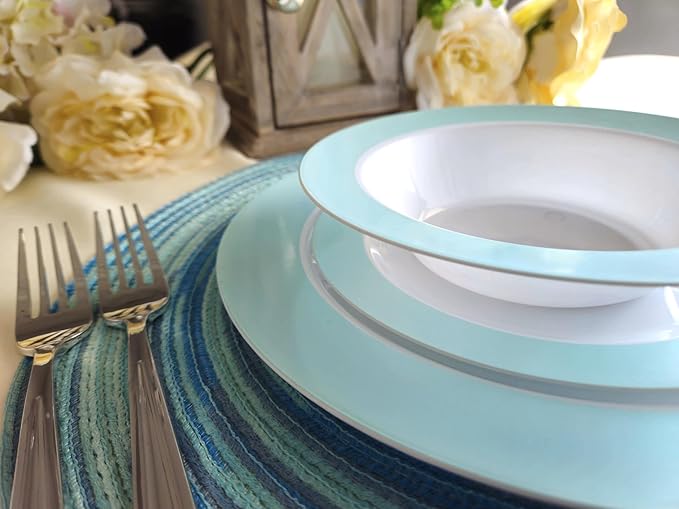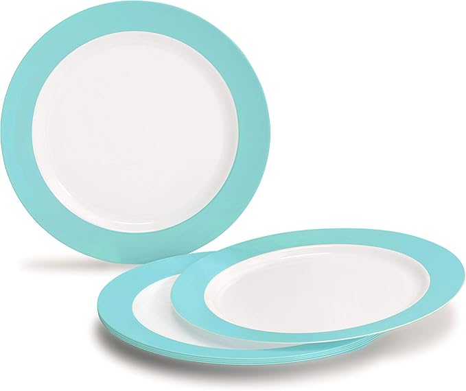 " OCCASIONS " 60 Plates Pack, Disposable Wedding Party Plastic Plates (10.5'' Dinner Plate, Rio in White Pearled Turquoise Blue)