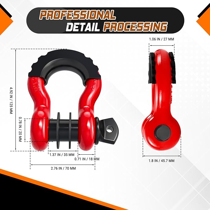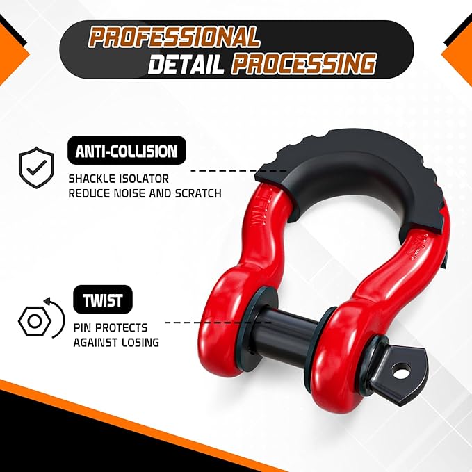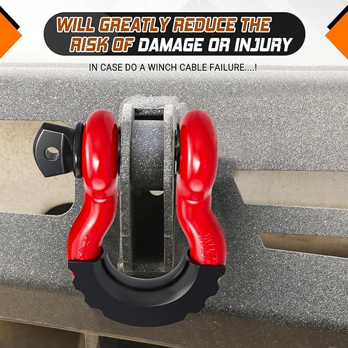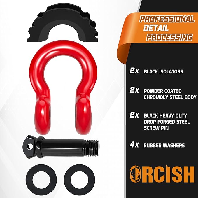 ORCISH 2PK D Ring Shackle, 42,000lb Break Strength, D Ring Shackles 3/4 inch with Black Isolator Washer and 7/8" Screw Pin, Tow Shackles, Soft Shackle Kit for Off-Road Jeep Truck Vehicle Recovery