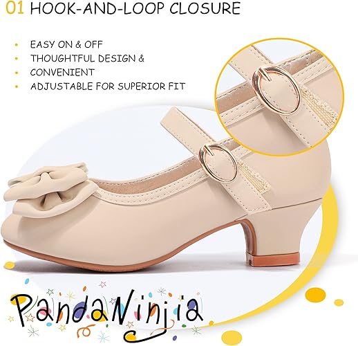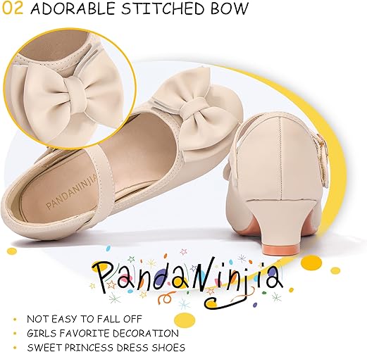 PANDANINJIA Girls Toddler/Little Kid Jada Dress Mary Jane Pumps Bow Low Heels Party Wedding Princess Shoes