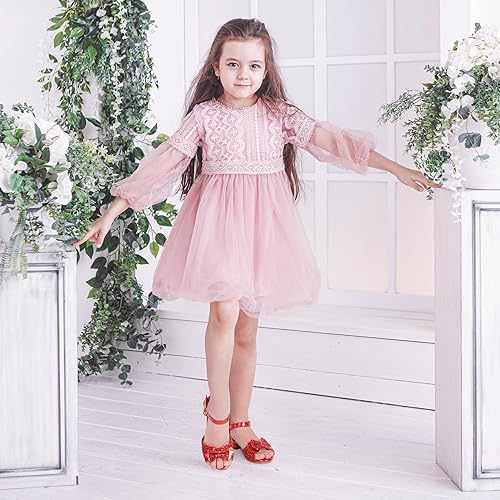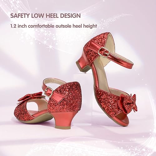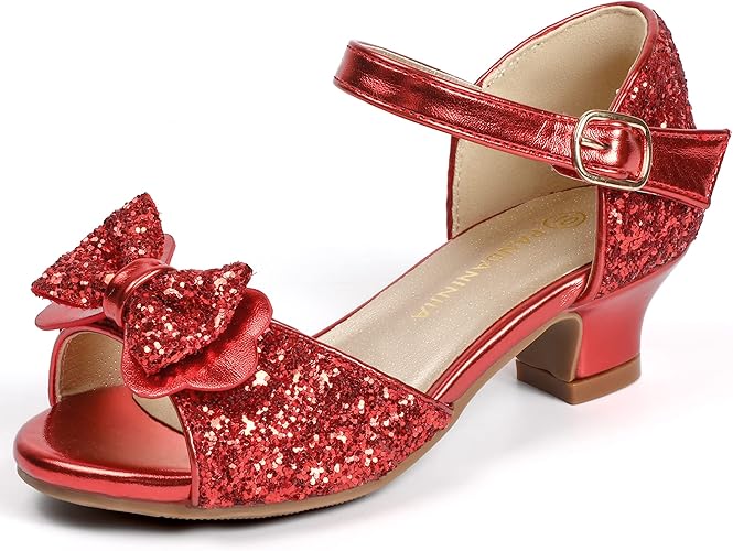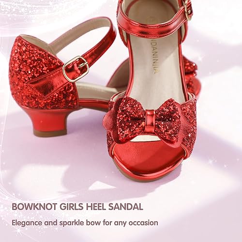 PANDANINJIA Wendy Girls Heels Dress Shoes Flower Girl Mary Jane Sandals Wedding Party Princess Shoes for Toddler Little Kid Big Kid