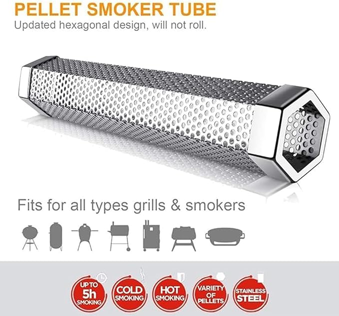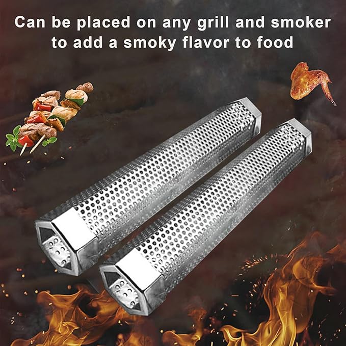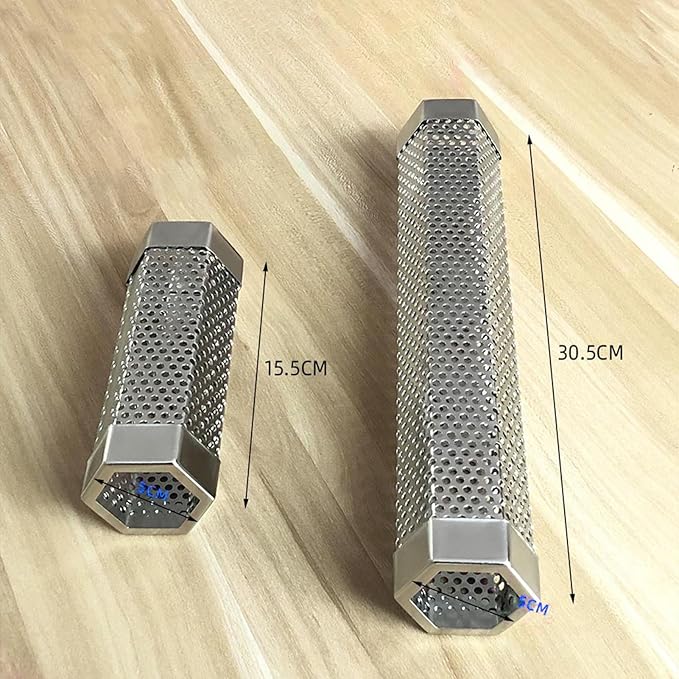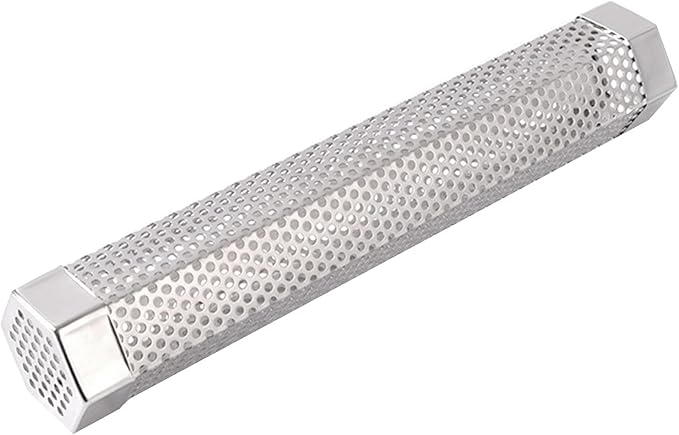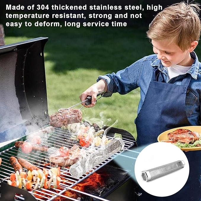 Pellet Smoker Tube, Pellet Charcoal BBQ Net, Stainless Steel BBQ Wood Pellet Tube Smoker with Ventilation Holes, Easy to Clean Reusable Grill Accessory for BBQ, Camping Essential 12Inch