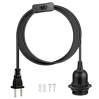 Plug in Hanging Light Cord Kit - 16Ft Pendant Light Plug in Lamp Kit, E26/E27 Bulb Socket Lantern Extension Cord with On/Off Switch, Socket Rings, Black