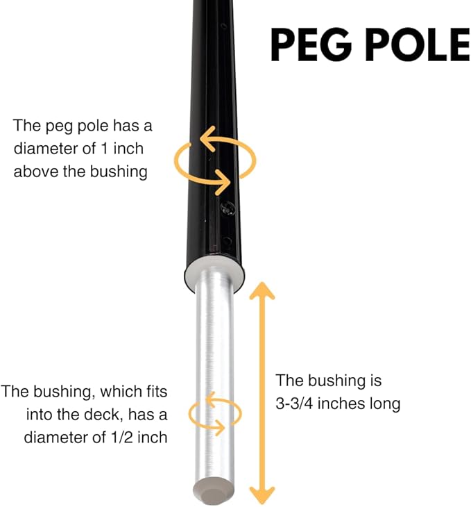 Drilled hole size for the peg pole sleeve is 5/8 Inch