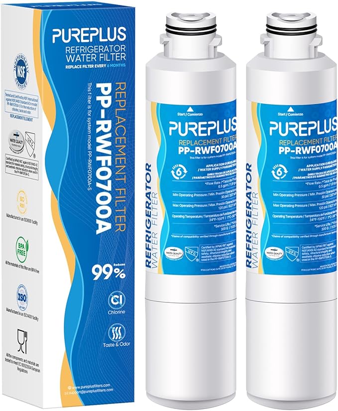 The PUREPLUS DA29-00020B Replacement Water Filter 2-pack is compatible with Samsung models RF28HMEDBSR, RF263BEAESR, RF4287HARS, RFG297HDRS, RF28HFEDBSR, and others including HDX FMS-2, HAF-CIN/EXP, PL-200, DA97-08006A, 469101, and RWF0700A. These filters provide expert-level purification, effectively reducing contaminants to deliver clean, fresh-tasting water and ice. Designed for easy installation, they help maintain your refrigerator’s filtration system and support your household’s health with reliable,