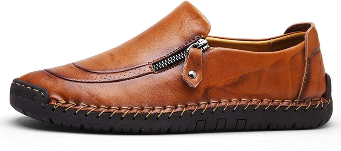 Qiucdzi Men's Casual Penny Loafers Breathable Lace-up Driving Boat Shoes Handmade Flats Dress Shoes
