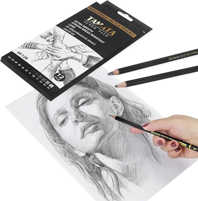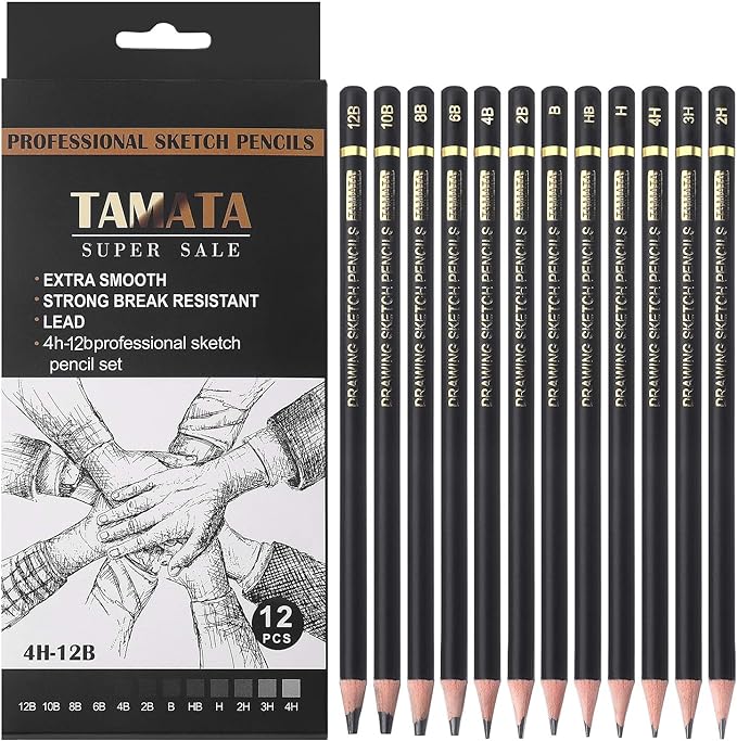 RVOGJP TAMATA Professional Drawing Sketching Pencil Set - 12 Pieces Art Graphite Pencils(12B - 4H), Ideal for Drawing Art, Sketching, Shading, for Beginners & Pro Artists