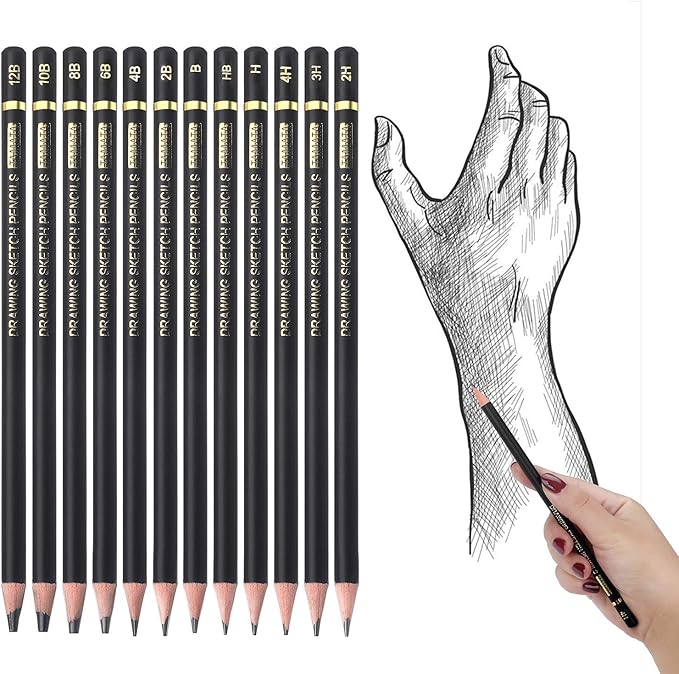 The RVOGJP TAMATA Professional Drawing Sketching Pencil Set includes 12 graphite pencils ranging from 12B to 4H, offering a comprehensive range for detailed drawing, shading, and sketching. Designed for both beginners and professional artists, these pencils deliver smooth, consistent lines and rich tonal variation. Ideal for fine art, technical sketches, and expressive shading, this set provides versatile tools to enhance your creative work with precision and control.