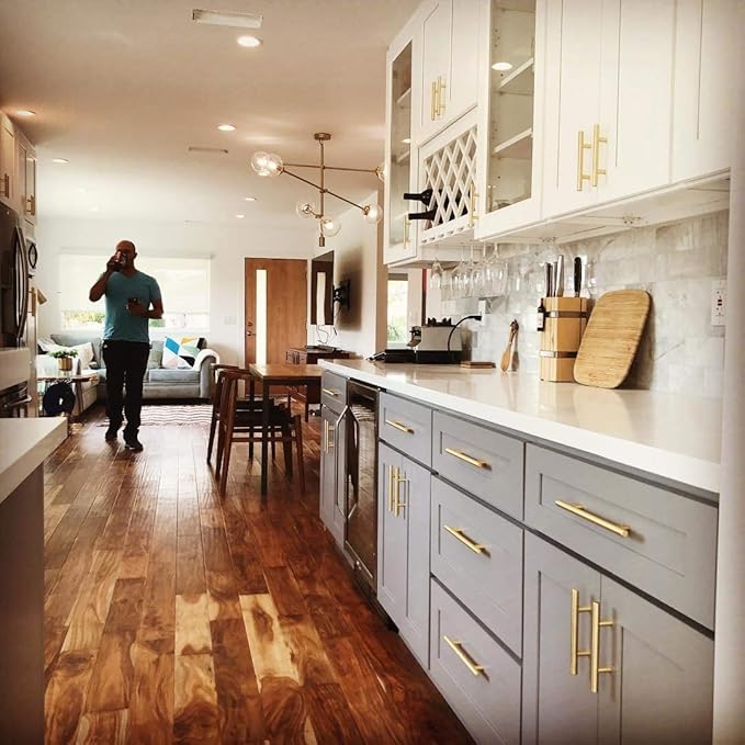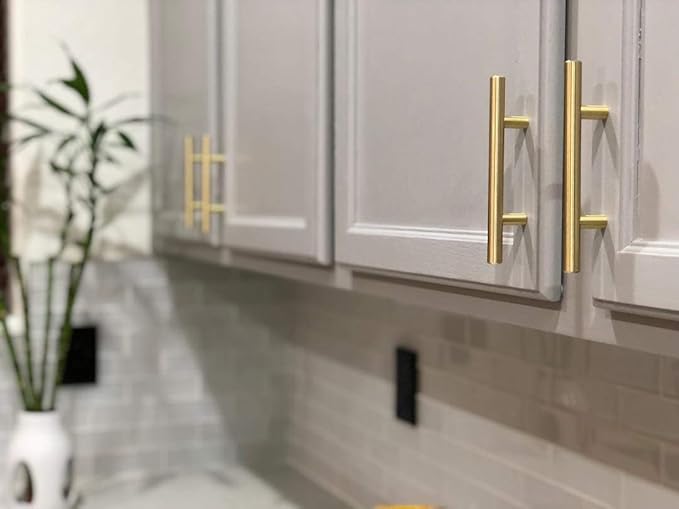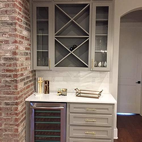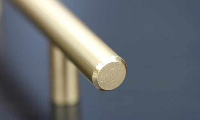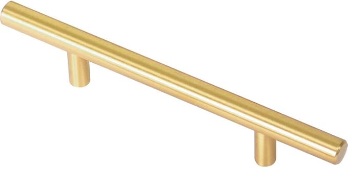 Satin Brass Cabinet Hardware Euro Style Bar Handle Pull - 6-3/4" Length - 96mm ~ 3-3/4" Hole - Brushed Brass Modern Gold