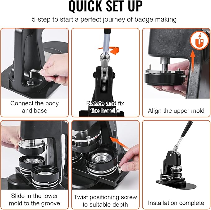 Vevor 3-in-1 Button Maker Machine, 1/1.25/2.28 Inch (25/32/58mm) Pin Press Kit