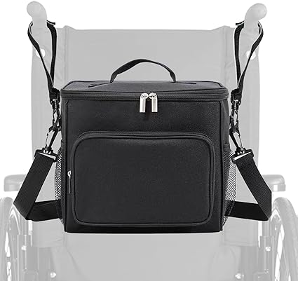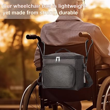 About this itemThe TONINT Wheelchair Bag features multiple pockets including a spacious main compartment a convenient front pocket and practical side mesh pockets This allows you to organize your essentials efficiently and have easy access to items like your phone keys wallet and medical suppliesMesh cup holder design2 mesh cup holders the cup holders on both sides of the wheelchair bag are suitable for different sizes of bottles and the top of the pocket has an adjustable pull rope to put small or large bottles straight Dont worry about spillingLong Shoulder Strap and lifting handleWheelchair Accessory Kit with adjustable and detachable shoulder strap and lifting handle makes it easy to carry your wheelchair bag anywhere providing you with a better carrying experienceThe TONINT Wheelchair Bag the ultimate storage solution for your mobility aids This spacious bag is designed to provide you with convenient storage space while on the go With its durable construction and versatile design it is the perfect accessory to enhance your wheelchair experienceCrafted from highquality materials the TONINT Wheelchair Bag offers exceptional durability and longevity It can withstand the demands of daily use and ensure that your belongings are securely stored The premium craftsmanship guarantees that this bag will be your trusted companion for years to comeCOOLER BAG The bag is made of insulated material which can keep food and drinks cool or warm for more than 5 hours Besides the interior lining is made of food grade PEVA foil so you can put your food into the bag directly without any worry The builtin foam provides great protection to your containers food and drinks