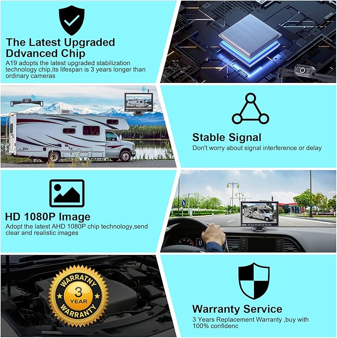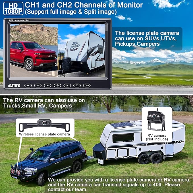 Wireless Backup Camera for Truck Car : 7-Inch Touch Key Monitor Plug
