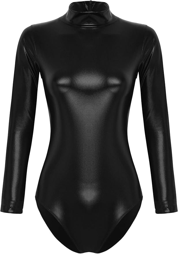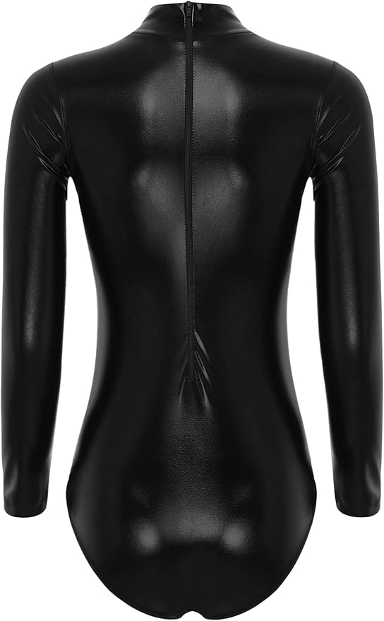 YiZYiF Womens Shiny Mock Neck Sleeveless Back Zipper Jumpsuit Gymnastic Leotard Lingerie Bodysuit